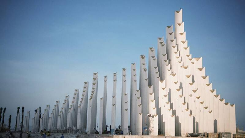 143 trụ đa giác với gạch gốm mosaic trên phần đỉnh giúp tháp Tam Thắng (phường Vũng Tàu, TP.HCM) lung linh vào ban ngày và rực rỡ về đêm nhờ hệ thống đèn trên mỗi cột.