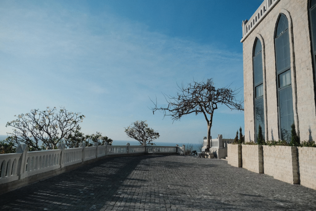 Nằm trong khuôn viên Trung tâm hành hương Chúa Kitô Vua, ngôi nhà nguyện mới xây đang dần hoàn thiện và nhanh chóng trở thành điểm check-in hút giới trẻ. Công trình mang đậm hơi thở châu Âu với mái vòm cong mềm mại, mặt tiền ốp đá xám thanh lịch, tạo nên vẻ cổ kính như một tòa lâu đài thu nhỏ giữa thiên nhiên Vũng Tàu.