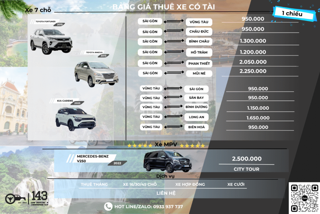 Một hành trình Vũng Tàu không chỉ là điểm đến, mà còn là những trải nghiệm trên đường đi. Tự lái hoặc đi xe thuê đều mang lại sự thoải mái và chủ động, đặc biệt khi có dịch vụ uy tín đi kèm. thuexe143.com luôn sẵn sàng cung cấp xe chất lượng, giá ổn định để bạn yên tâm tận hưởng từng khoảnh khắc.