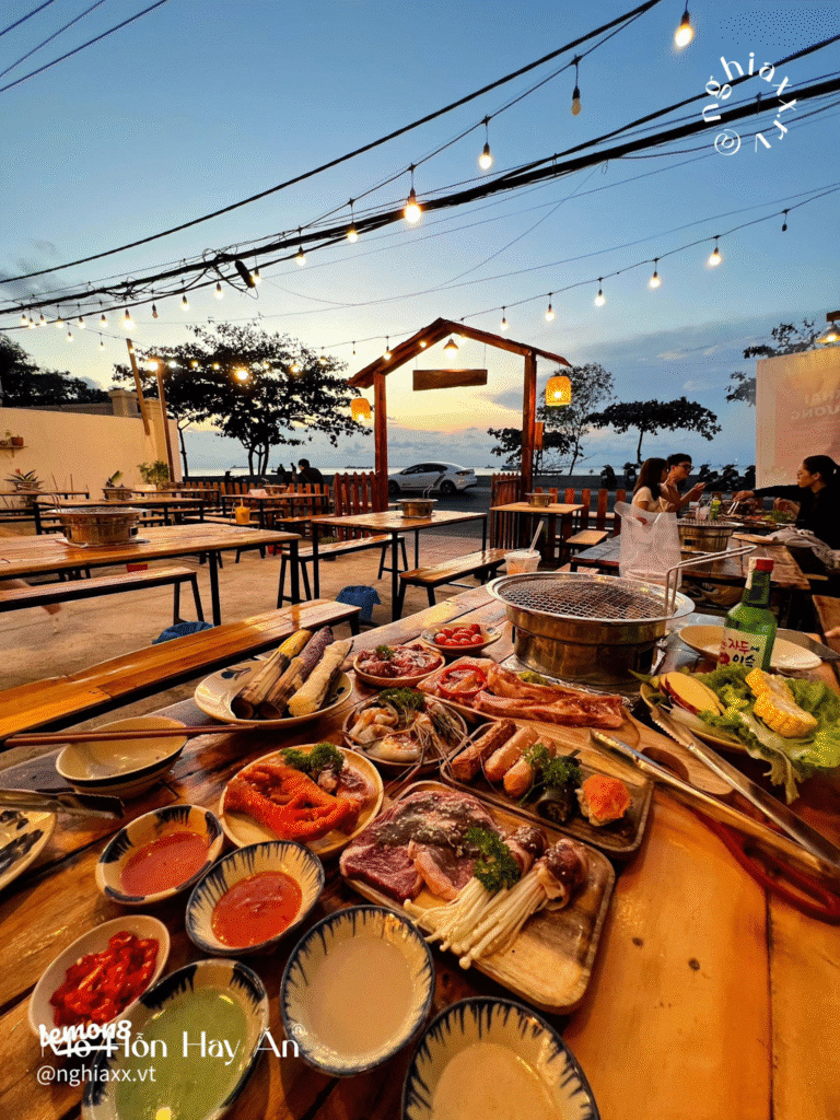 Quán phục vụ buffet 179.000đ với cả lẩu và nướng, đi kèm không gian thoáng đãng, view đẹp. Thực đơn gồm gần 20 món nướng đa dạng, kết hợp nhiều loại sốt chấm đặc trưng để thực khách thoải mái lựa chọn.