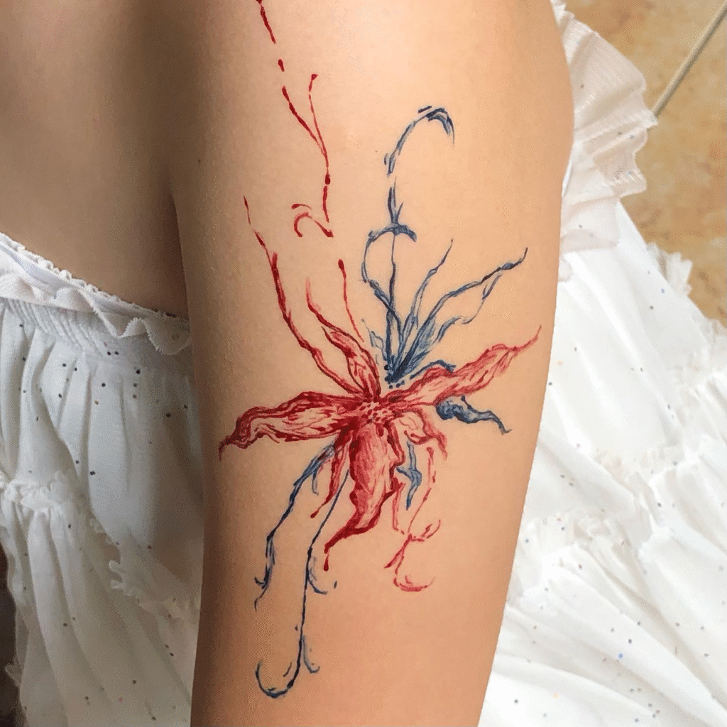 Ở đây, henna được biến tấu tự do hơn – mang hơi thở hiện đại và cá nhân hóa. Mỗi hình vẽ được thực hiện thủ công, không theo khuôn mẫu: có người thích đường nét mảnh tinh tế màu đen hoặc đỏ, có người chọn tone pastel pha cầu vồng – vừa đáng yêu vừa năng động.
