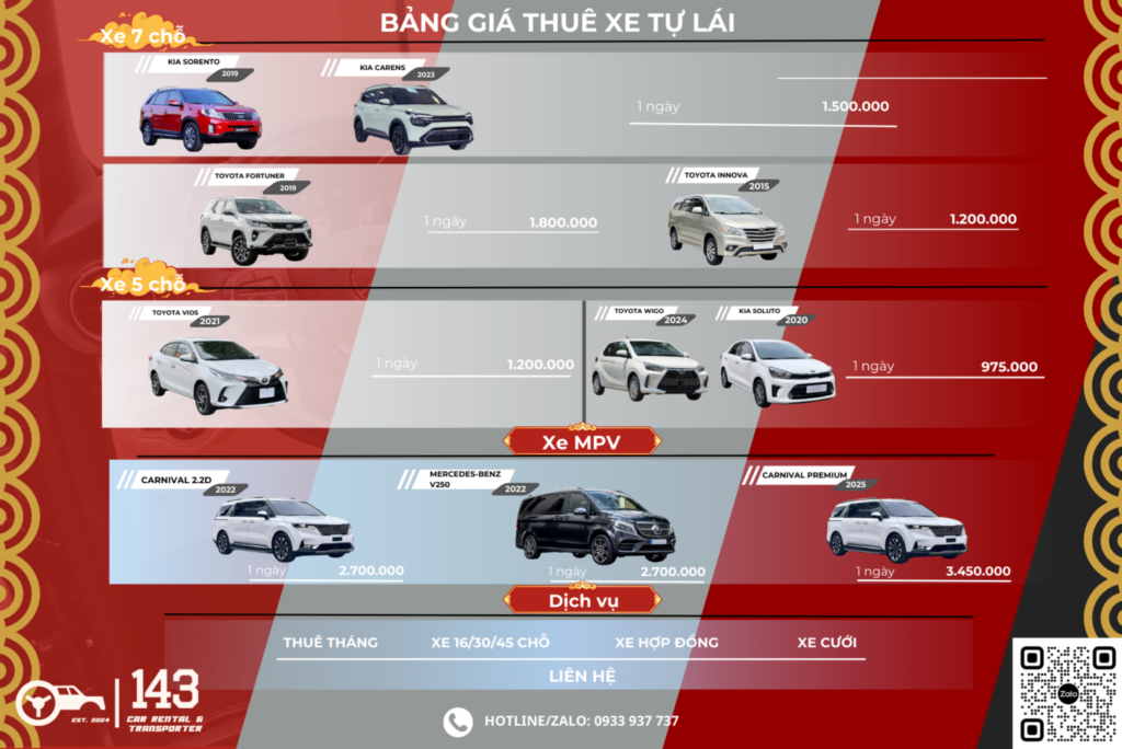Đây là phân khúc được săn đón nhiều nhất vì sự cân bằng giữa chi phí và công năng. Tại 143 Car Rental, chúng tôi chia nhỏ các lựa chọn để phù hợp túi tiền của bạn: